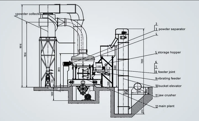 High Pressure Mill's complete structure is composed of main engine, analyzer (pulverizer), pipeline device, blower, finished cyclone separator, jaw crusher, bucket elevator, electromagnetic vibrating feeder, electronically controlled motor and other components.
