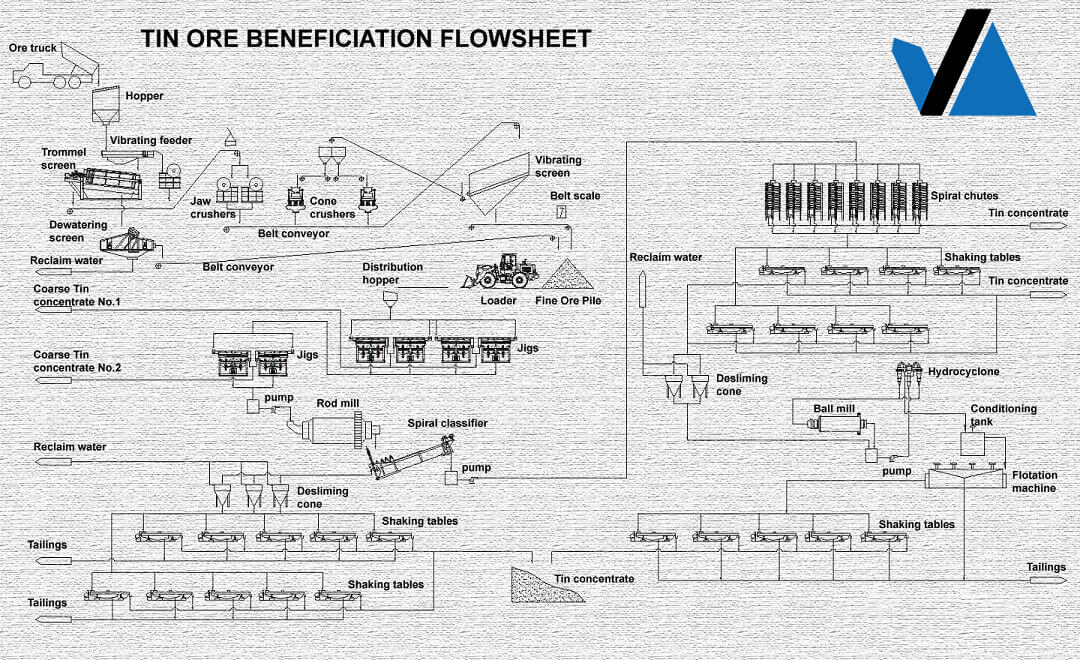 Because the density of cassiterite is higher than that of symbiotic minerals, the traditional process of tin ore beneficiation is gravity beneficiation. With the passage of time, the particle size of cassiterite in the selected ore continues to become finer, and the cassiterite flotation process appears. In addition, because tin minerals often contain various iron oxide minerals, such as magnetite, hematite, and limonite, these minerals cannot be separated from cassiterite well by flotation and gravity separation. Magnetic separation has recently appeared in the tin ore beneficiation process. At present, most of the float-gravity beneficiation process is used in tin ore dressing process.